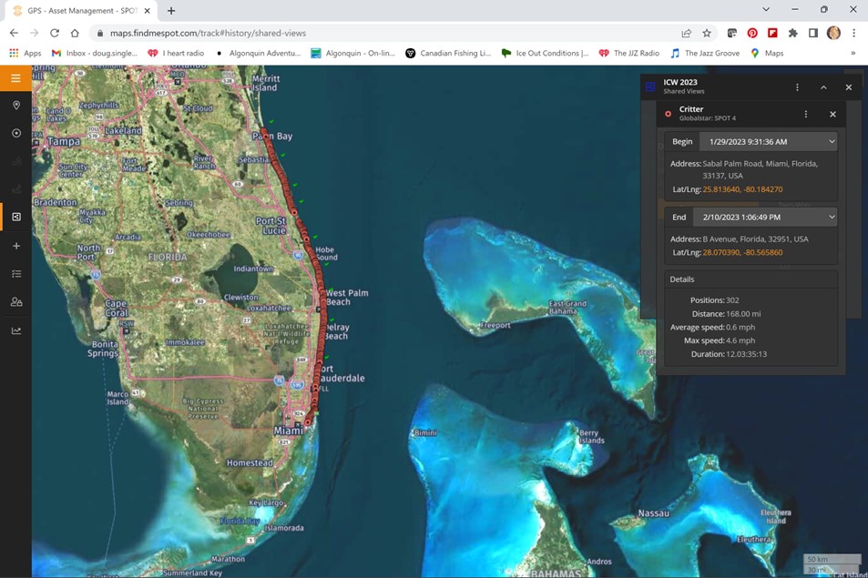 So the picture above is from the tracking map and shows the entire trip. 168 miles from Miami to Melbourne Beach Fla. I am good with my decision to stop but not happy it is over. I am looking forward to the Sept. NFCT (Northern Forrest Canoe Trail) trip. A trip that will be much more in my wheelhouse. I plan on posting my lessons learned and any addendums (like if I do/or plan to do other parts of the ICW) in the near future. So stay tuned. Thanks again for all the support y’all sent my way.